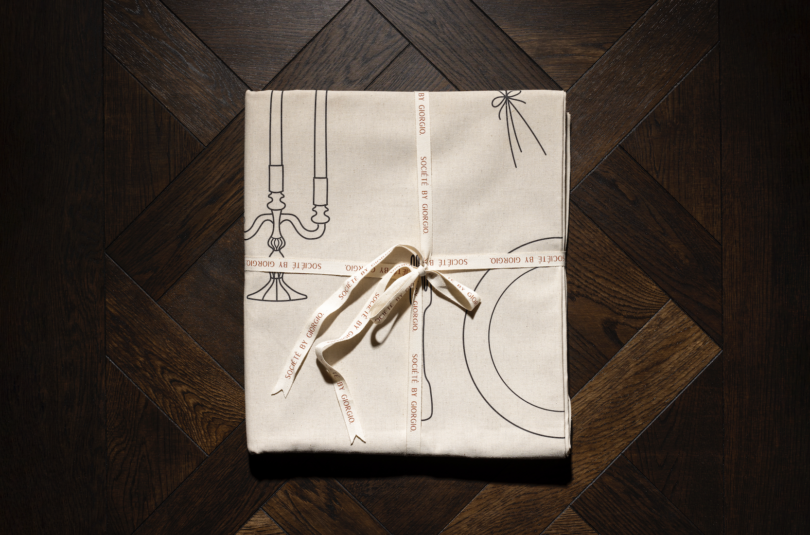 This linen cotton blend tablecloth features prints of a dining table, including a knife, fork, vase, and glass. Perfect for special occasions or everyday use, this tablecloth will add a touch of elegance and fun to your dining experience. Its high-quality material ensures durability and easy maintenance.